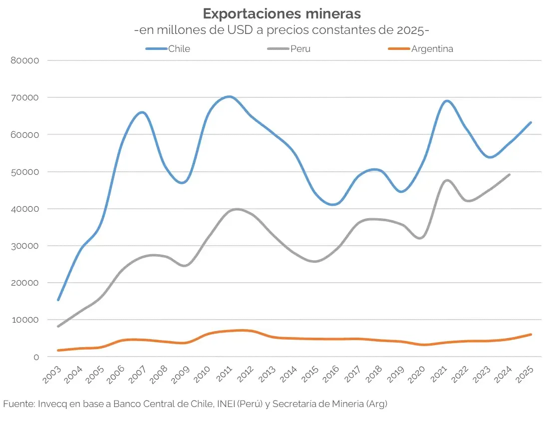 A nivel regional, esa diferencia es aún más clara. Países como Chile y Perú han consolidado el desarrollo de sus recursos y su posicionamiento como exportadores globales de minerales. Argentina comparte la misma cordillera con Chile, pero presenta niveles de exportación significativamente menores, lo que configura una brecha concreta y una oportunidad de convergencia.